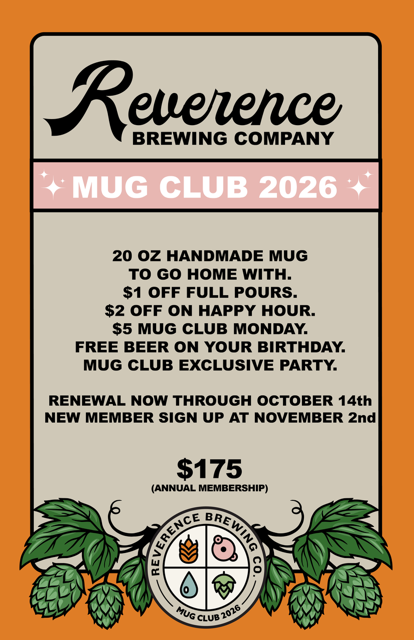 Have a special occasion coming up — like a birthday, graduation, retirement, or work event? Contact Nate at n8@reverencebrewingcompany.com to book a private event at Reverence Brewing.